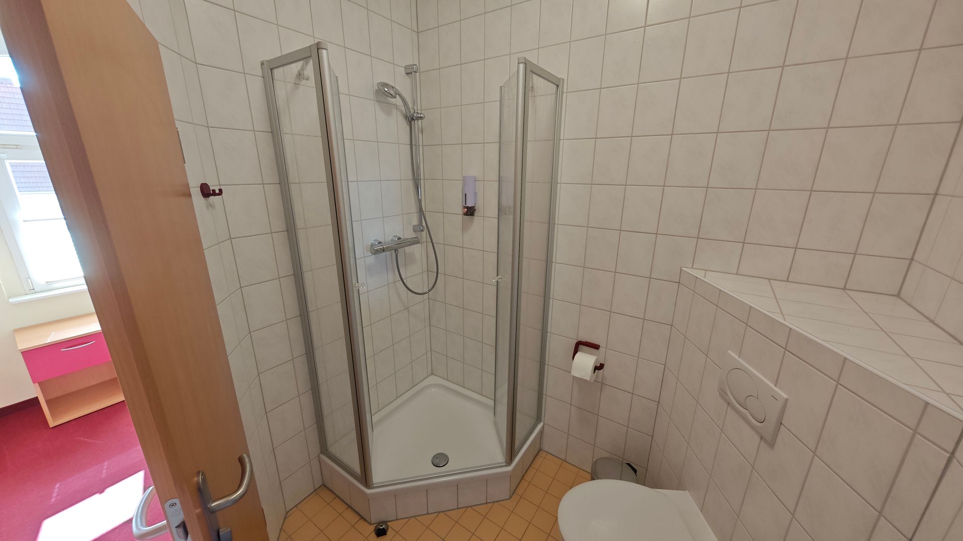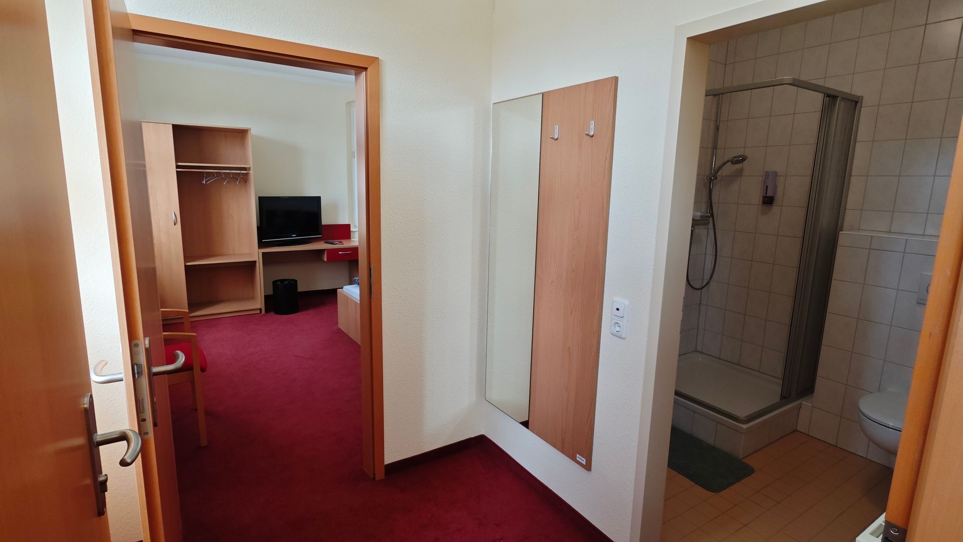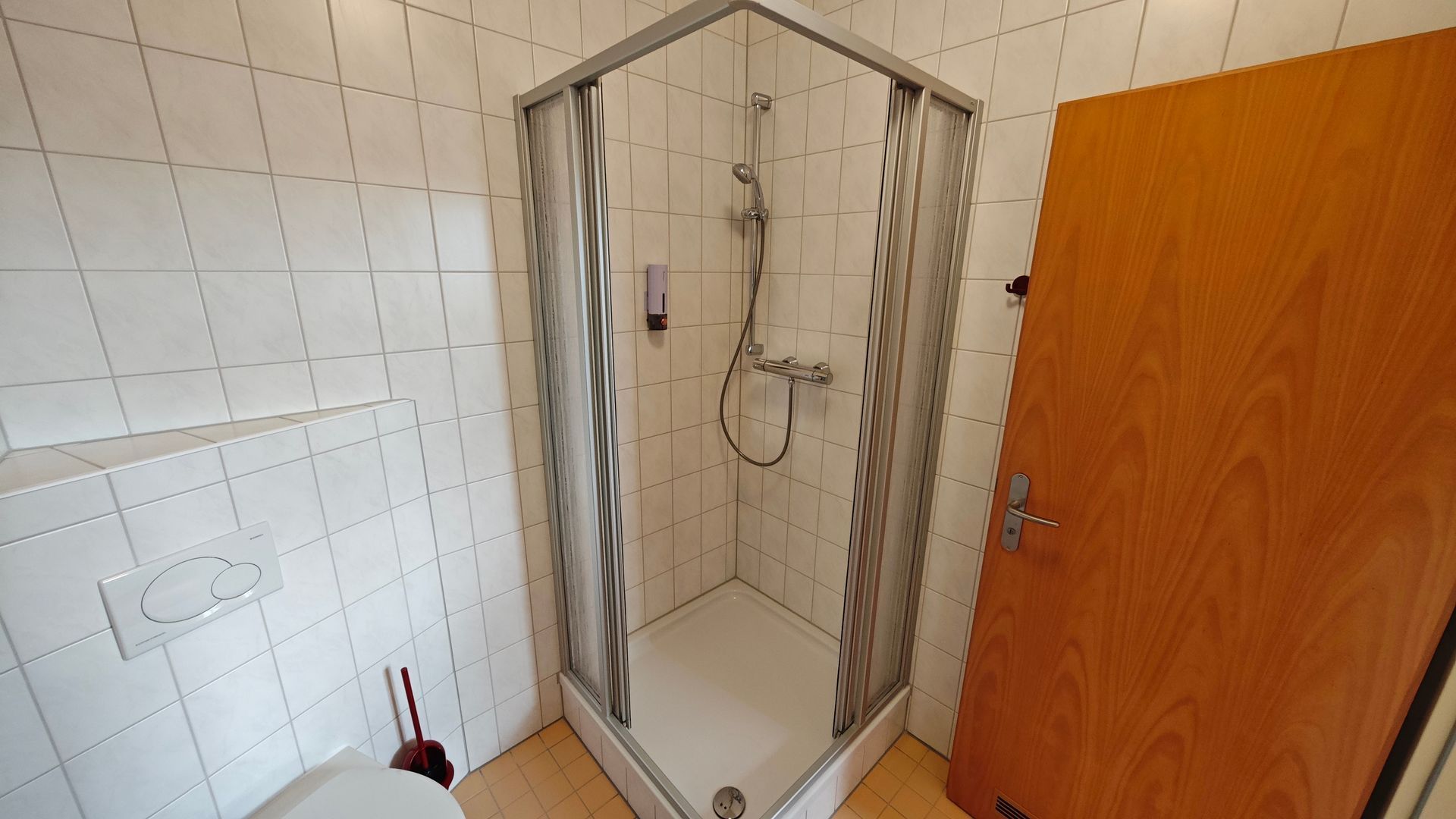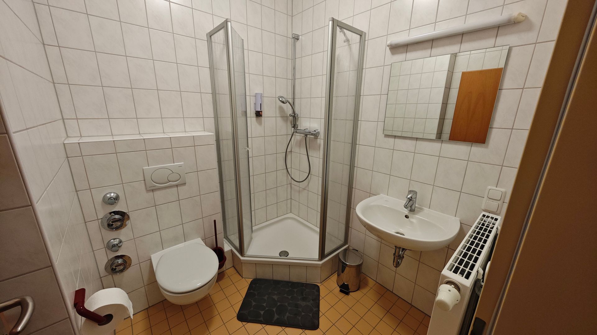 Dusche, Waschbecken, WC, Fernseher, frische Bettwäsche und Handtücher sind inklusive.